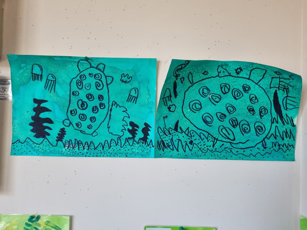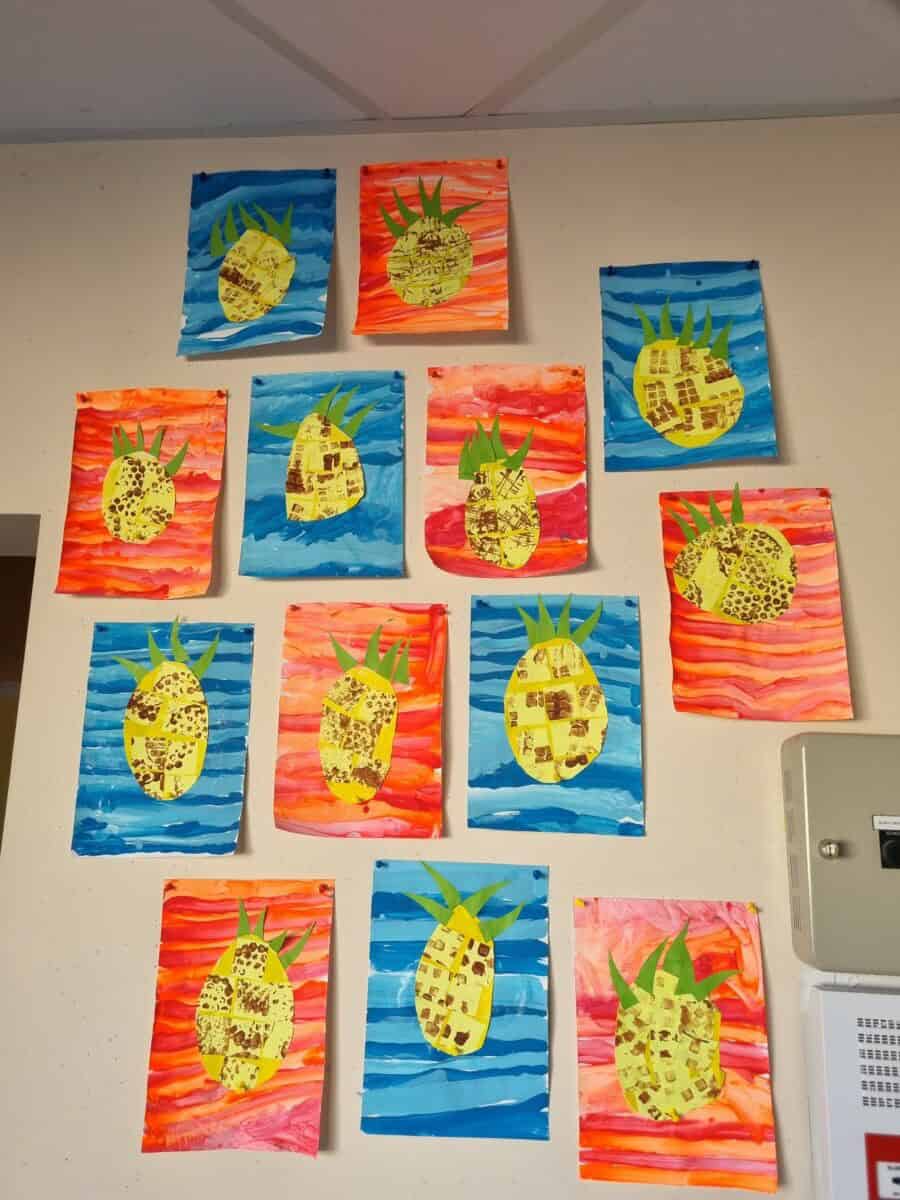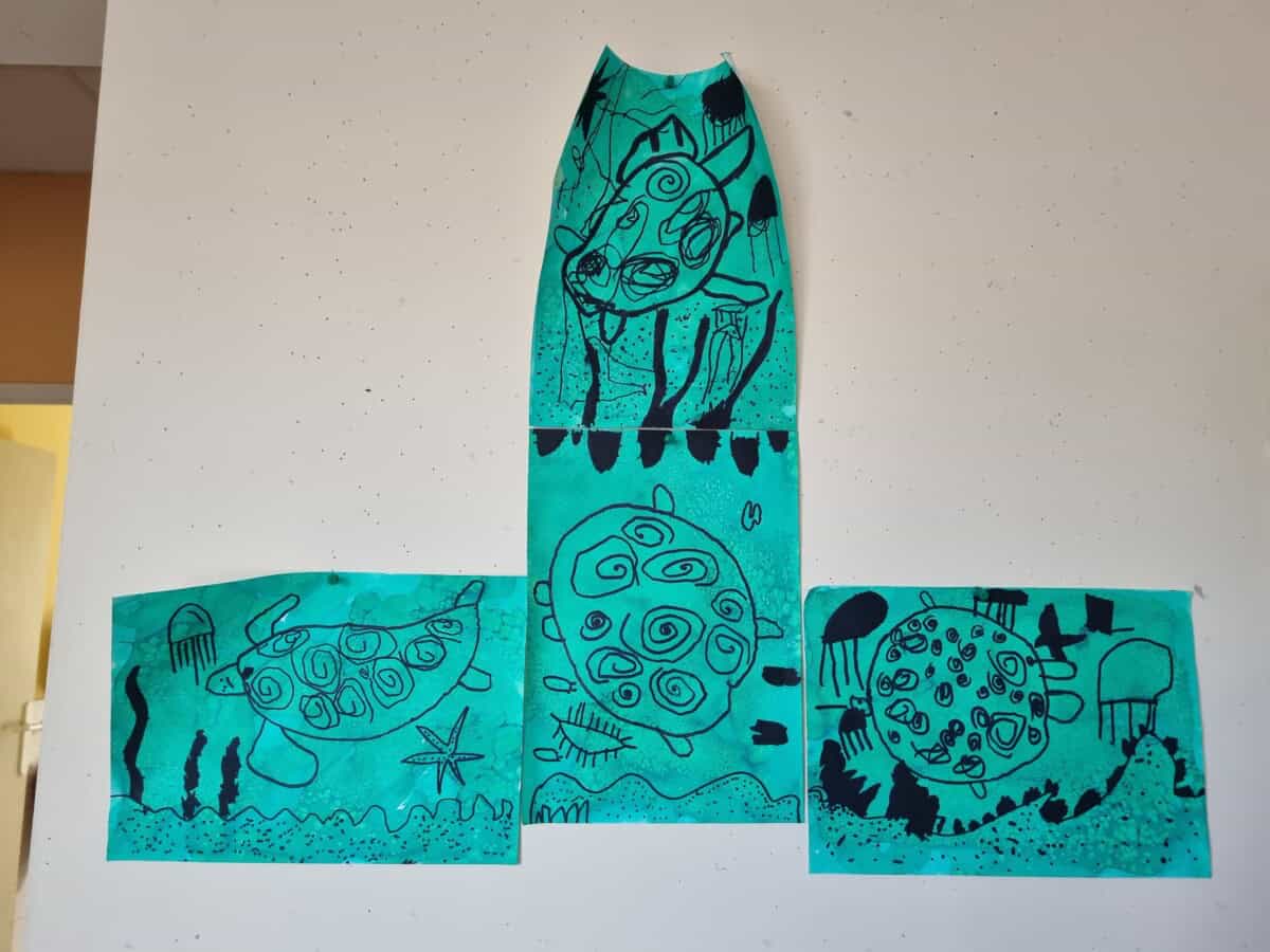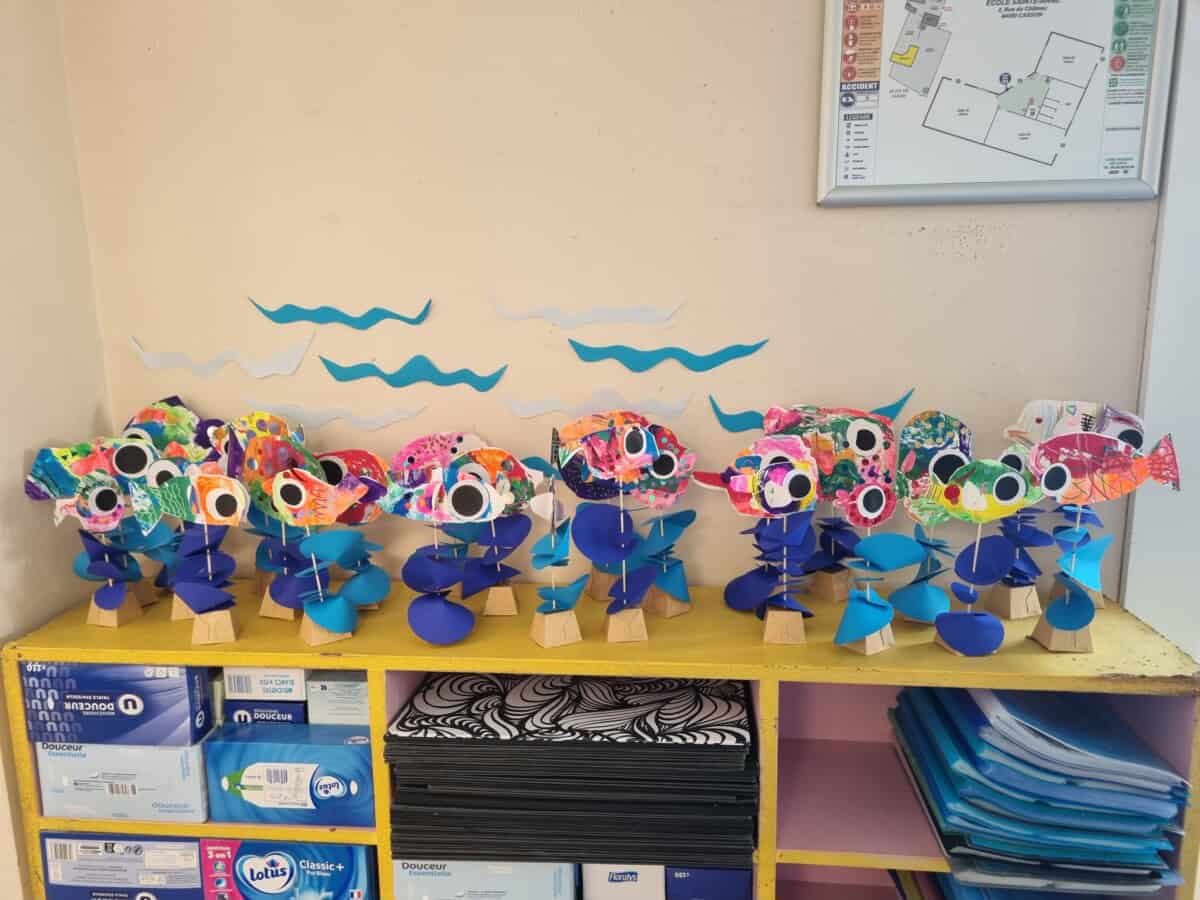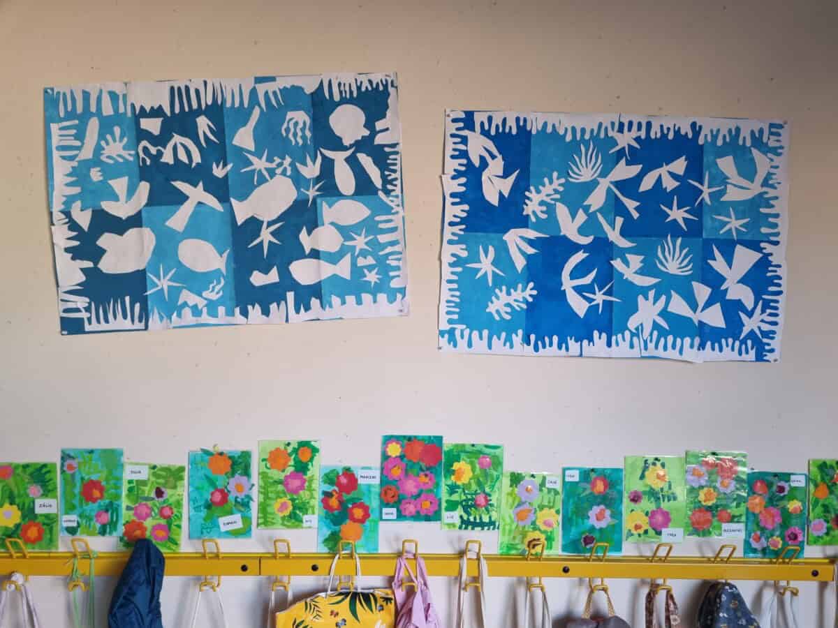 Dans le cadre du projet d’année, nous avons découvert en première période la Polynésie. Nous avons fait de nombreux arts visuels sur le thème (tortue, travail sur Matisse, des ananas, des coquilles avec des perles, de magnifiques poissons…). Nous avons aussi appris du vocabulaire spécifique à la Polynésie. Des parents nous ont aussi rapporté des souvenirs de leurs voyages sur les îles!