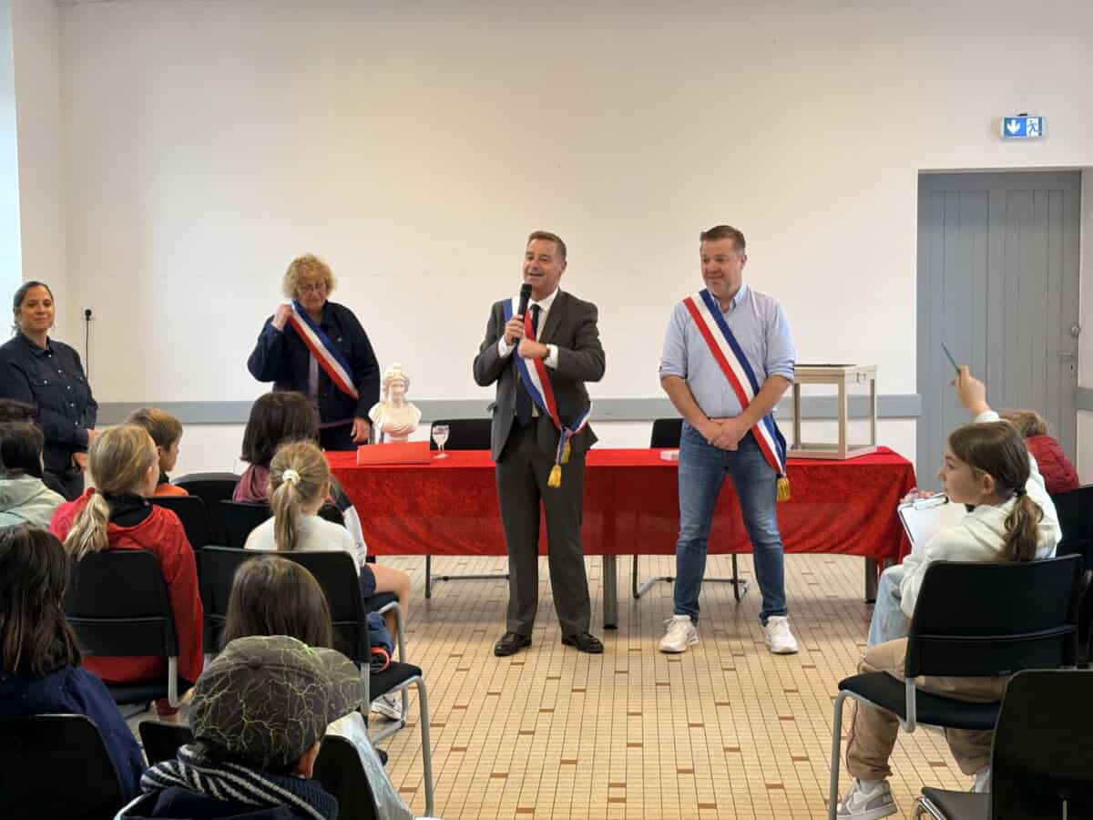 Ce vendredi 3 octobre, dans le cadre de la visite de l’assemblée nationale pendant les vacances scolaires , les élèves de CM1 et CM2 , en partenariat avec la mairie ont eu la chance de rencontrer Mr le Maire Philippe Euzenat et Mr le Député Fabrice Roussel.