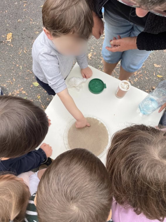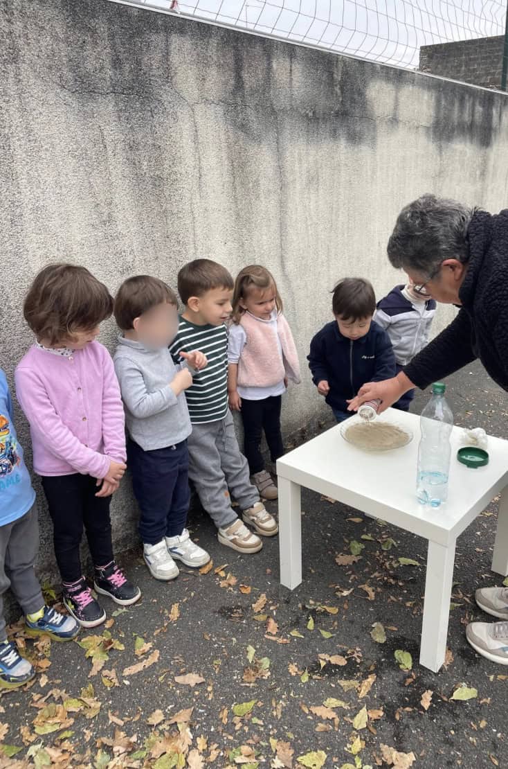 Cette période a aussi été l’occasion d’aborder le thème de l’hygiène. Les enfants ont découvert l’importance de se laver les mains et le corps. Grâce à une expérience amusante avec du poivre et du liquide vaisselle, ils ont compris que le savon faisait fuir les microbes ! Ils se sont également exercés à bien nettoyer chaque partie du corps en s’entraînant sur des poupons.