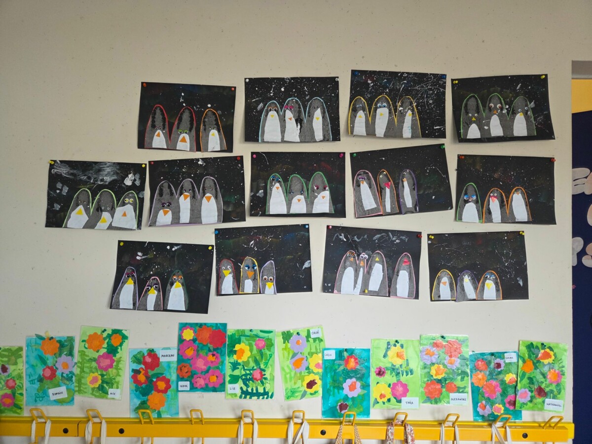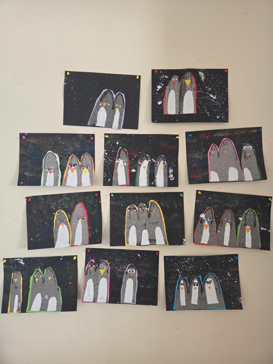 - ils ont réalisé des pingouins sur un fond d’aurores boréales,